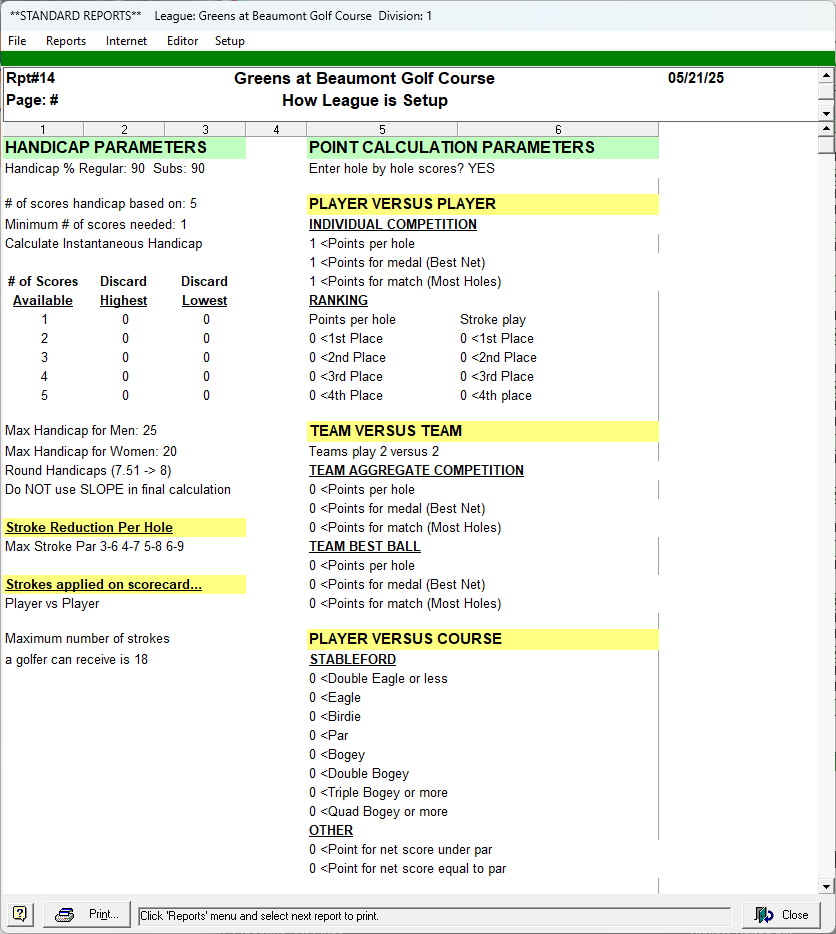 New Scoring: Instead of giving 2 points per man for winning the match with Net handicap, we are going to give One point for the Net score with handicap (Just like we’ve always done) BUT we’re also going to give One point to whoever wins the most holes for the match too. This will let people who had one blow up hole a chance to still win an extra point.